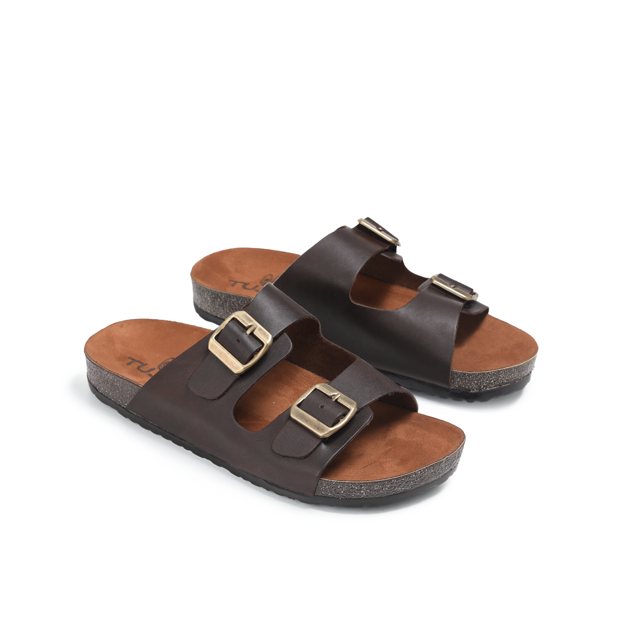 Men's slippers - genuine leather - dark brown