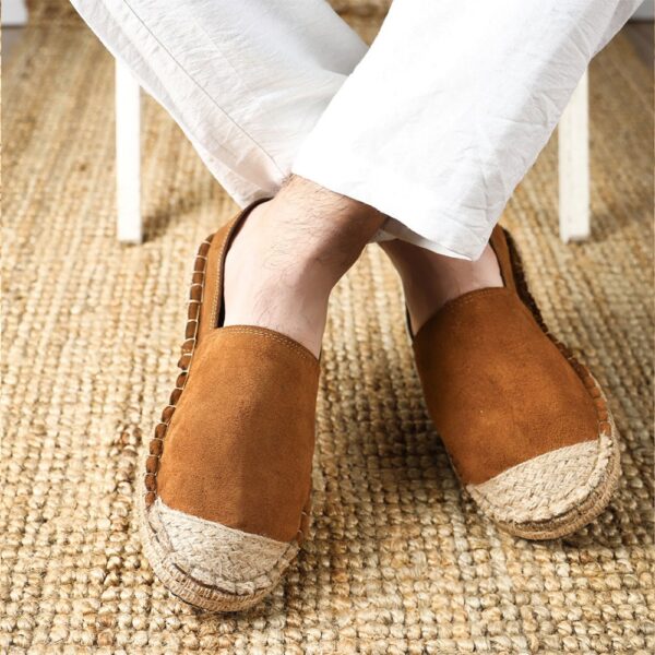 • The material is genuine leather, and the sole is cork and burlap